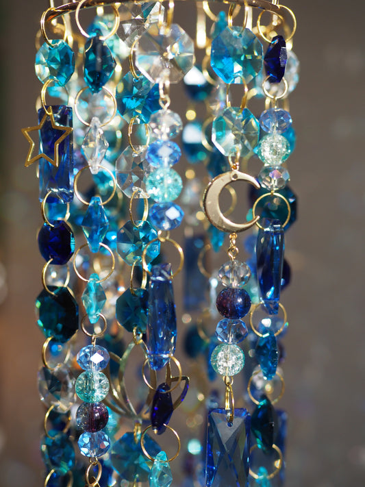 Blue Crystal wind chime suncatchers with moon, stars, lotus charms - Aria