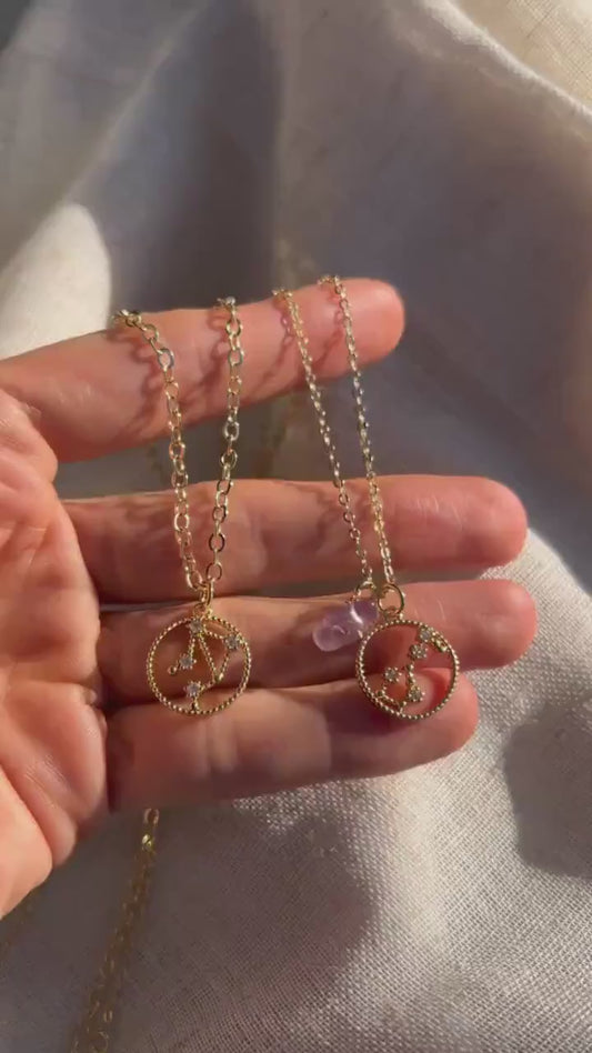 Gold filled Zodiac Necklace, Birthstone horoscope Necklace, Constellation Necklace Birth Sign, Christmas Gift Idea