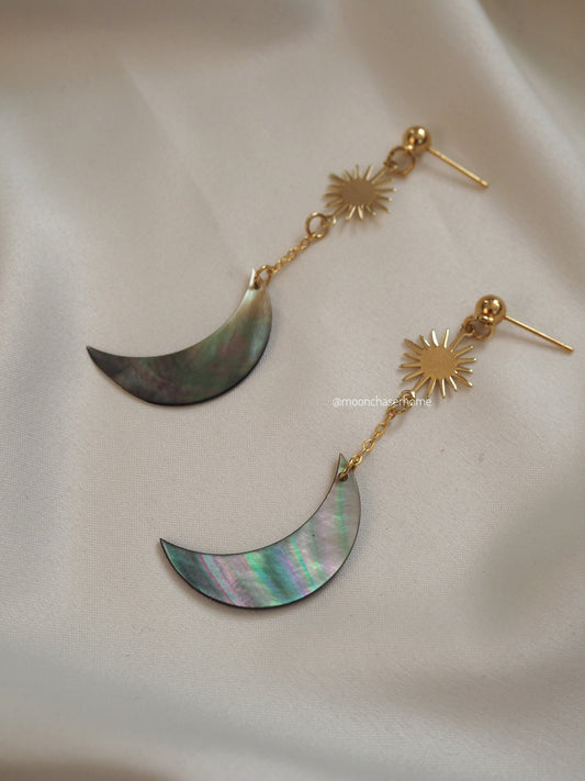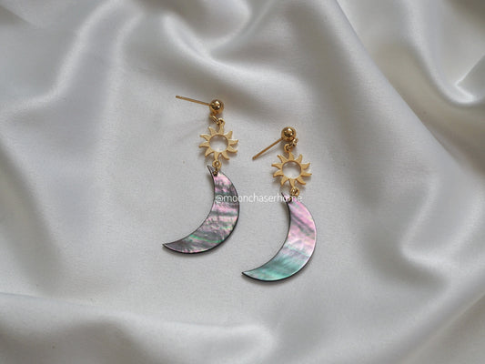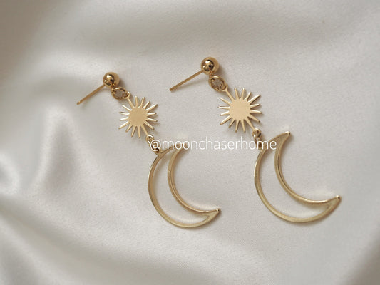 18K Gold Plated sun&moon earrings, boho earring, long earrings, boheman jewelry,Birthday gift,gift for woman, moon earring,celestial jewelry