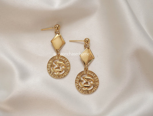 Zodiac earrings -Birthday gift-18K Gold Plated earrings,horoscope earrings, boheman jewelry,gift for woman,gift for her, gold jewelry