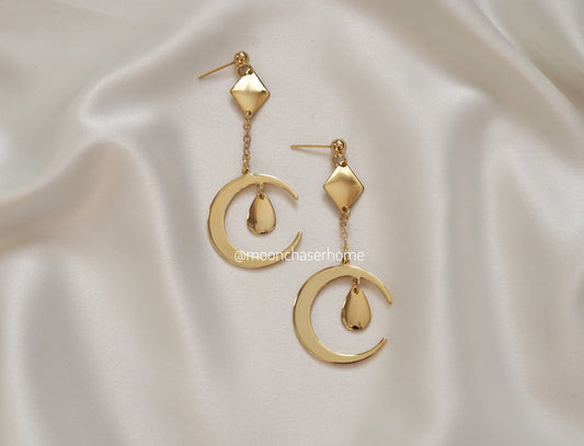 18K Gold Plated moon earring , boho earring, long earrings, boheman jewelry,Birthday gift,gift for woman, celestial earring, moon jewelry