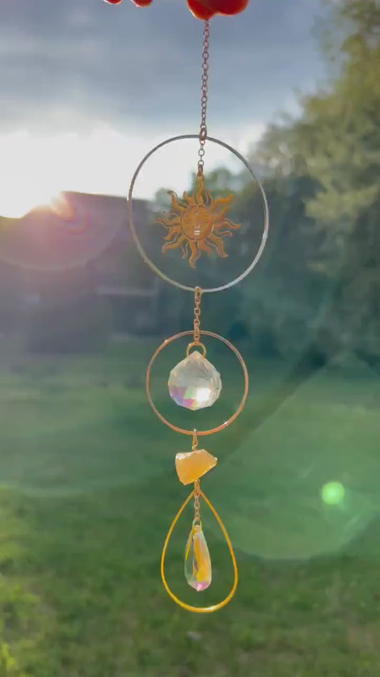 Latika- suncatcher with natural crystals, prism, window decor car charm, citrine - rose quartz