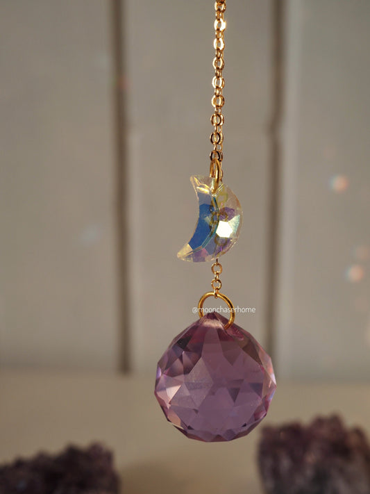 Sana crystal suncatcher with moon, car charm, rainbow prism, light diffuser, window crystal,rainbow maker