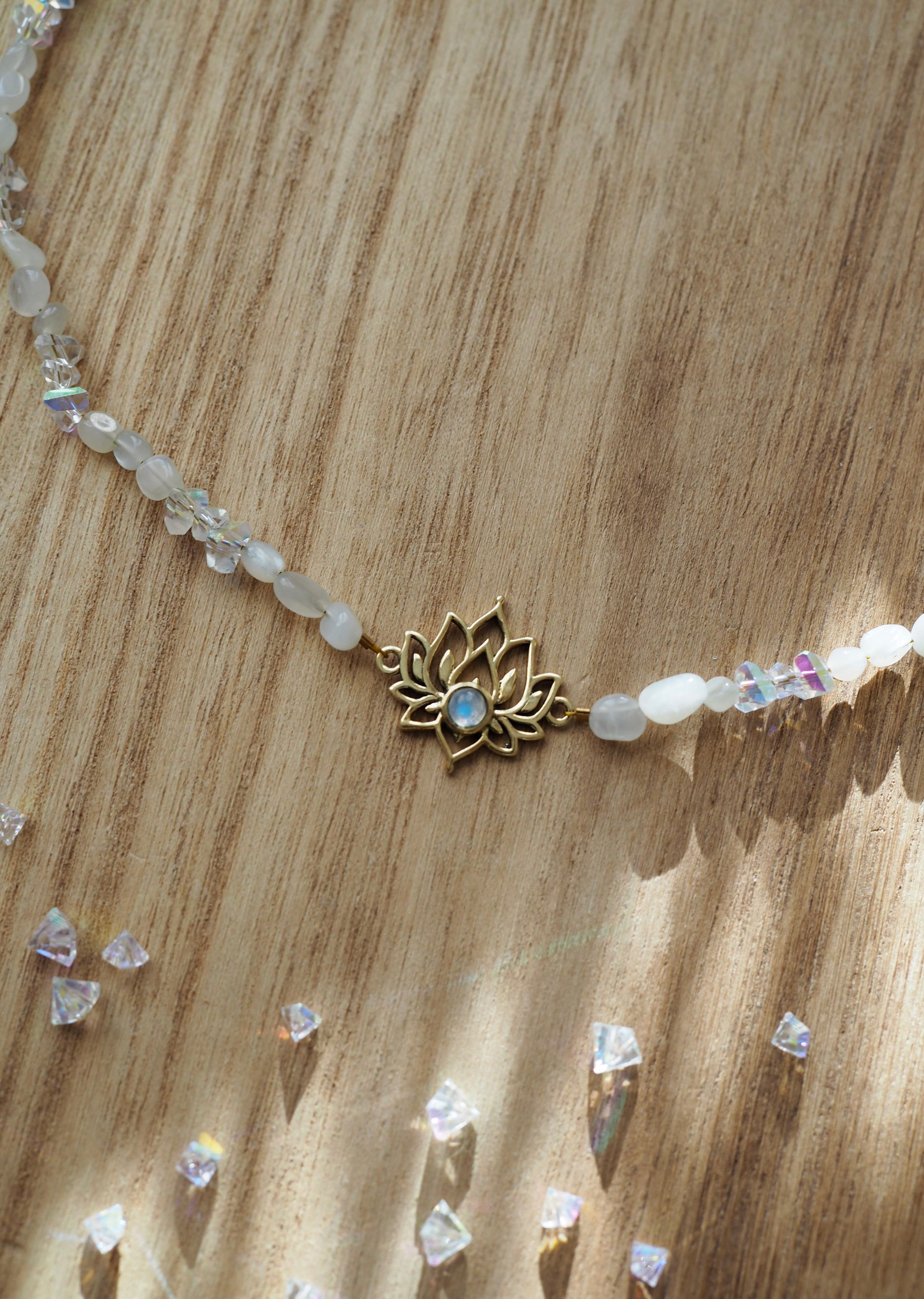 Moonstone & Glass Bead Lotus Necklace