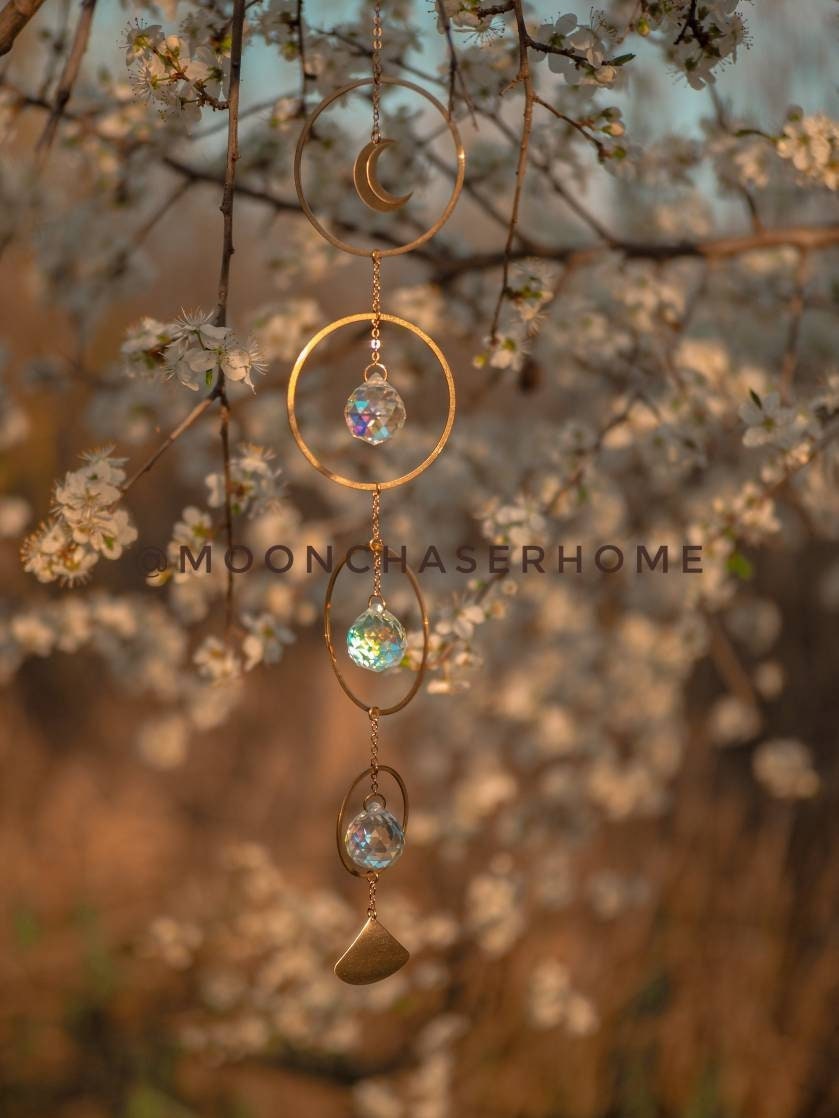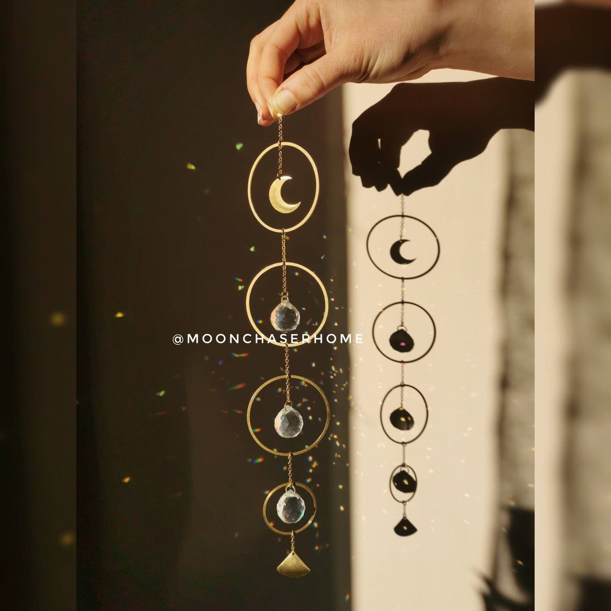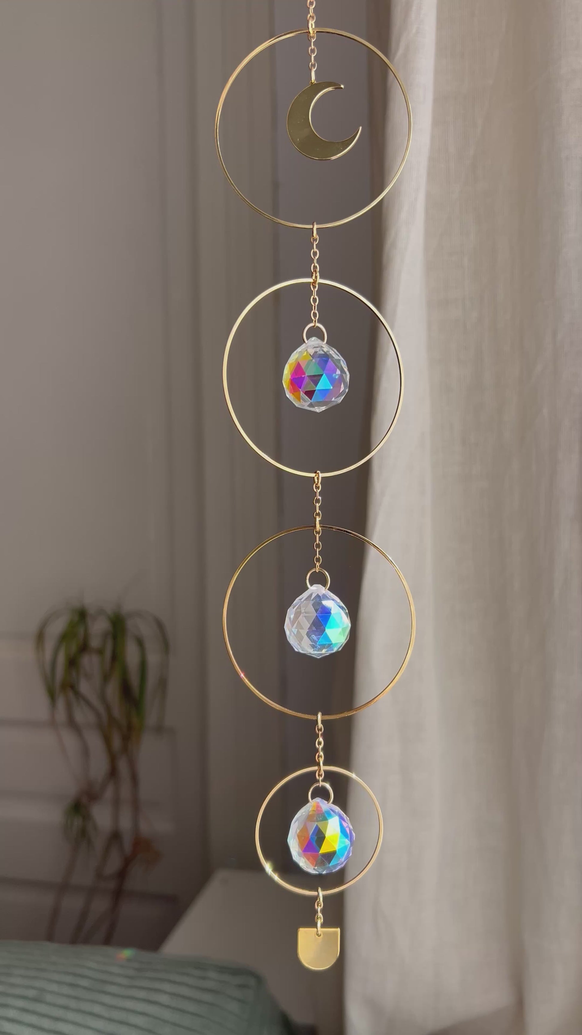 Ayla crystal sun catcher with brass moon, rainbow prism, light diffuser, boho home decoration, fairy decor, gift for woman