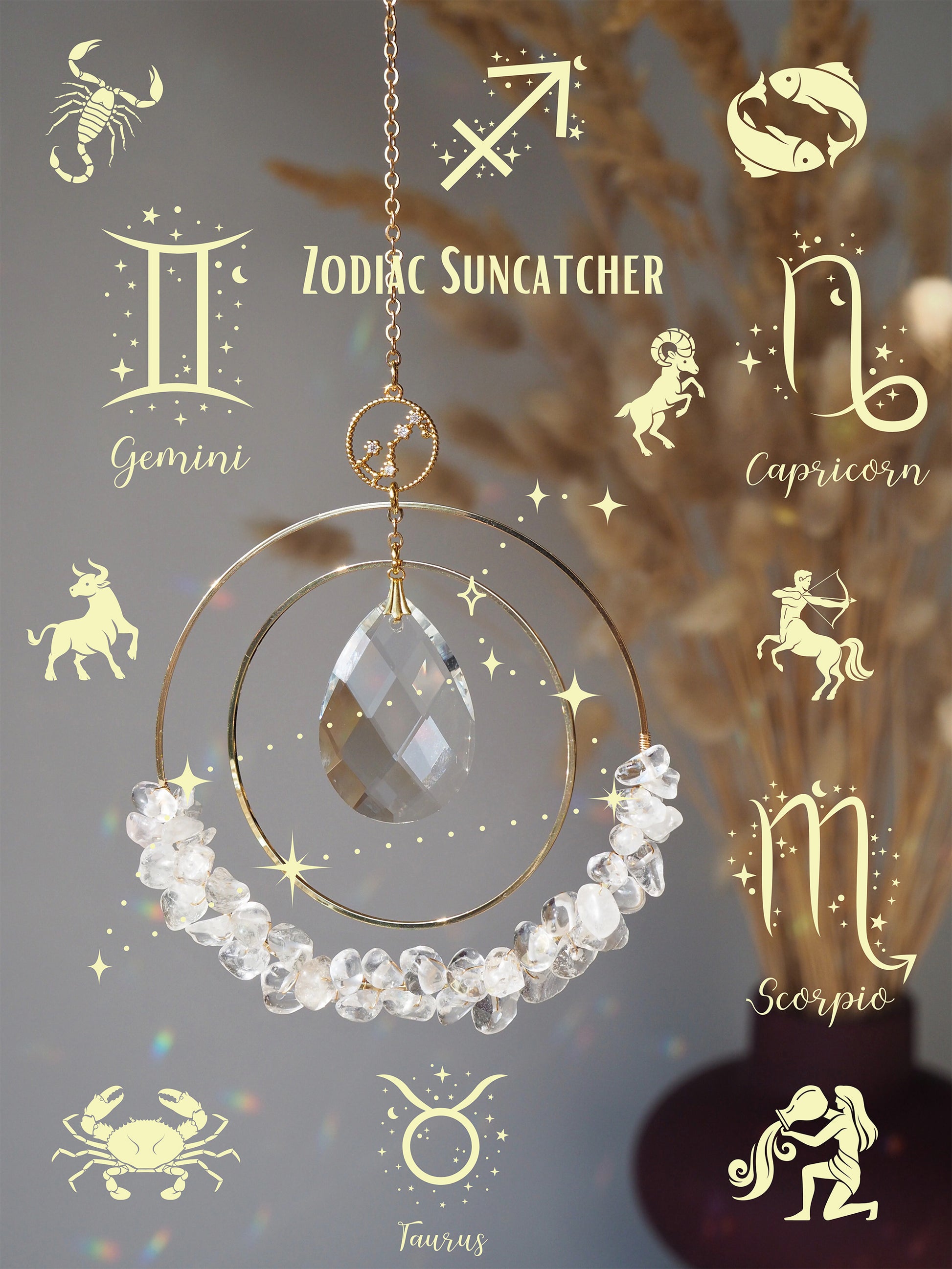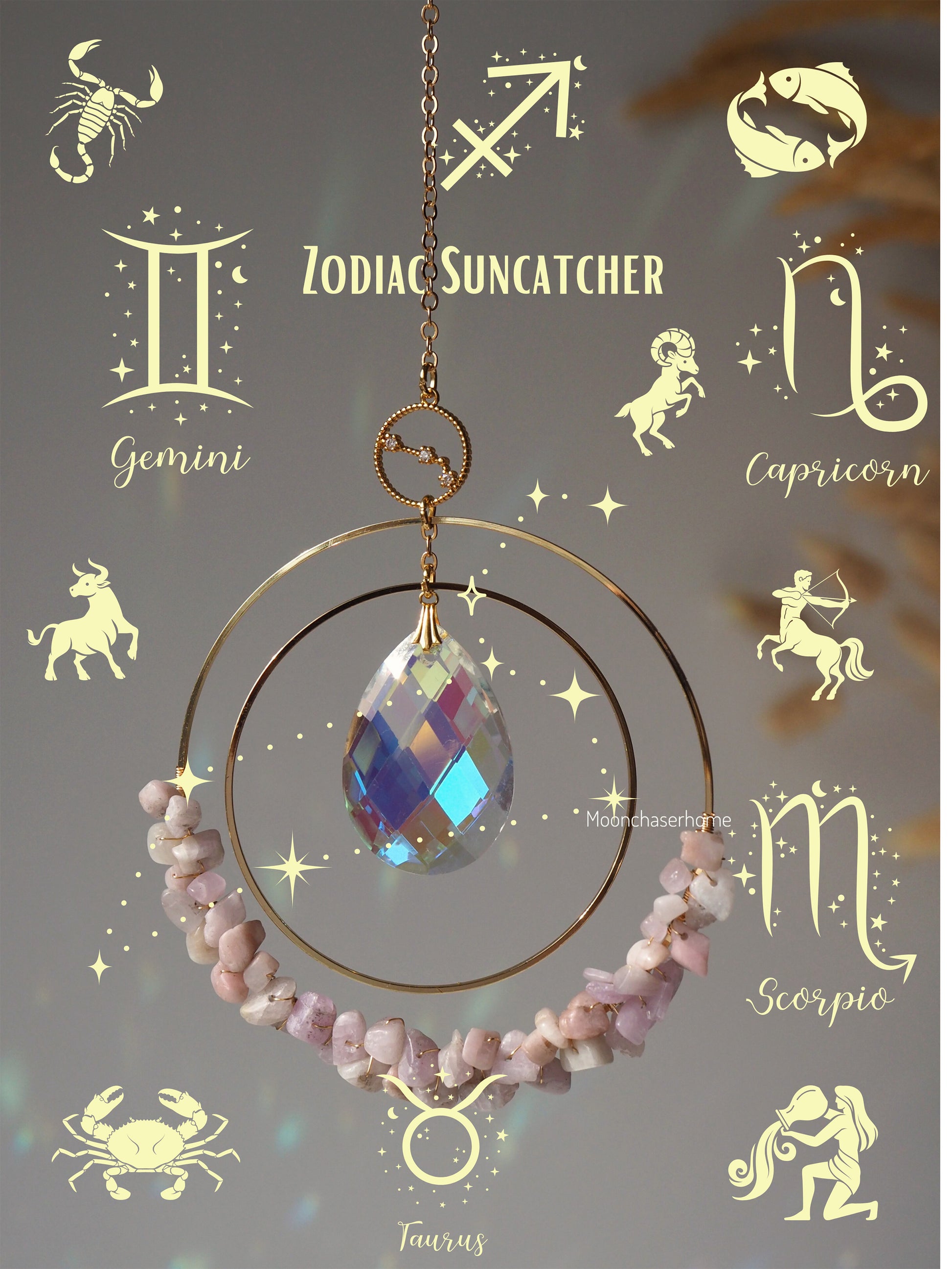 Zodiac Suncatcher with birthstone, Aziza prism, car charm with gemstones, horoscope gift, Birthday gift