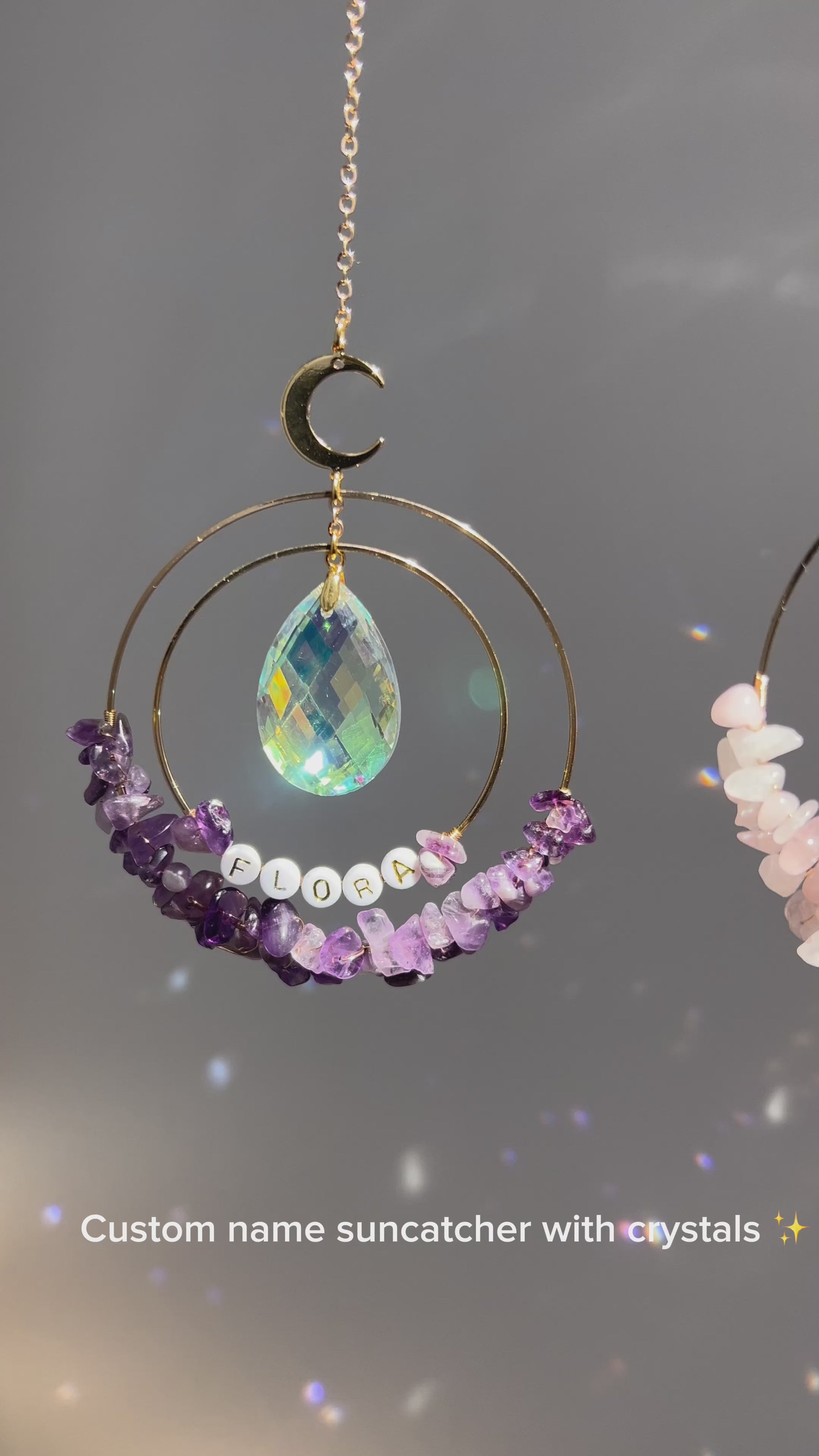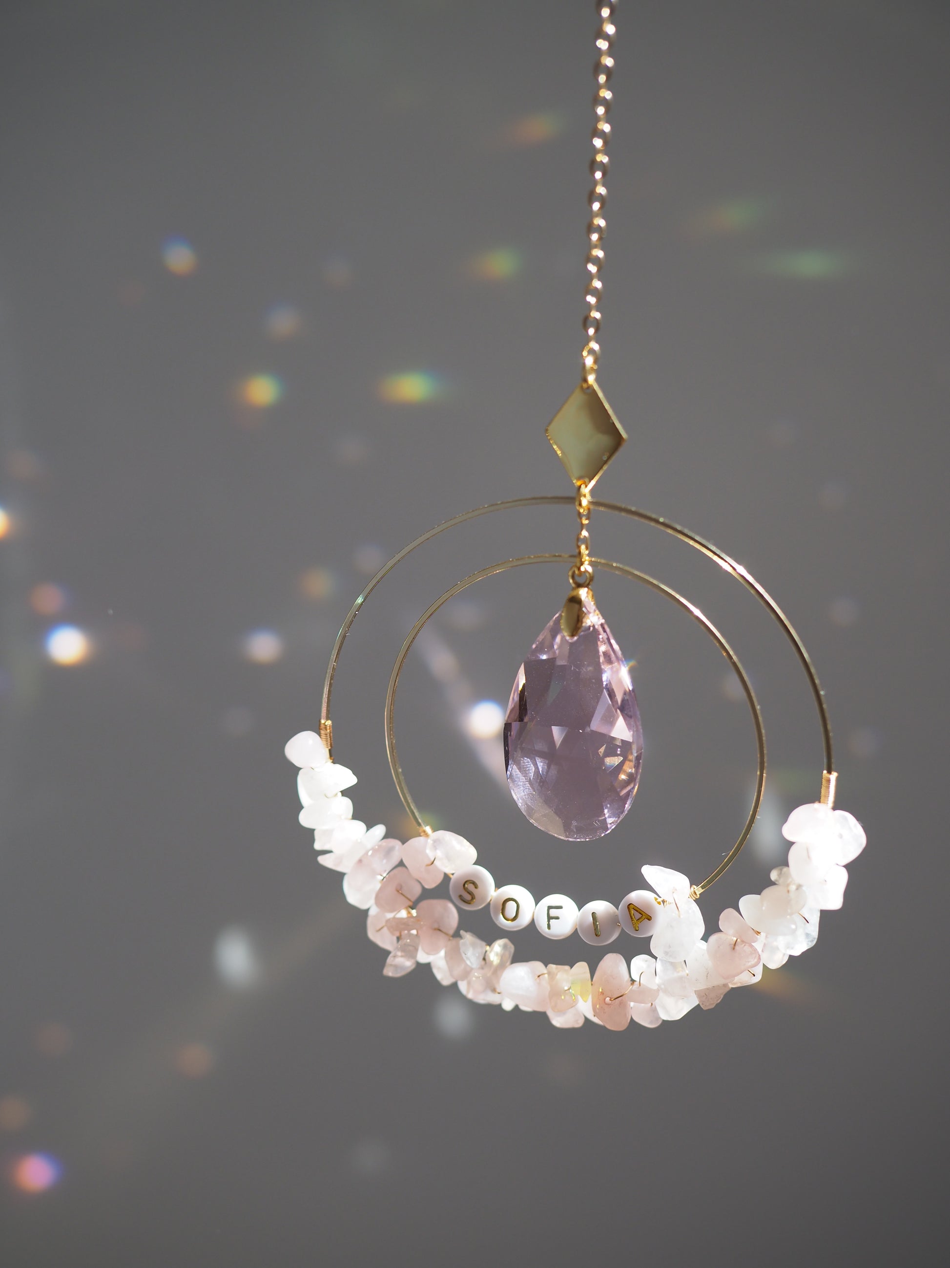 Personalised Name bead Suncatcher with crystals custom gift for her car charm crystal sun catcher