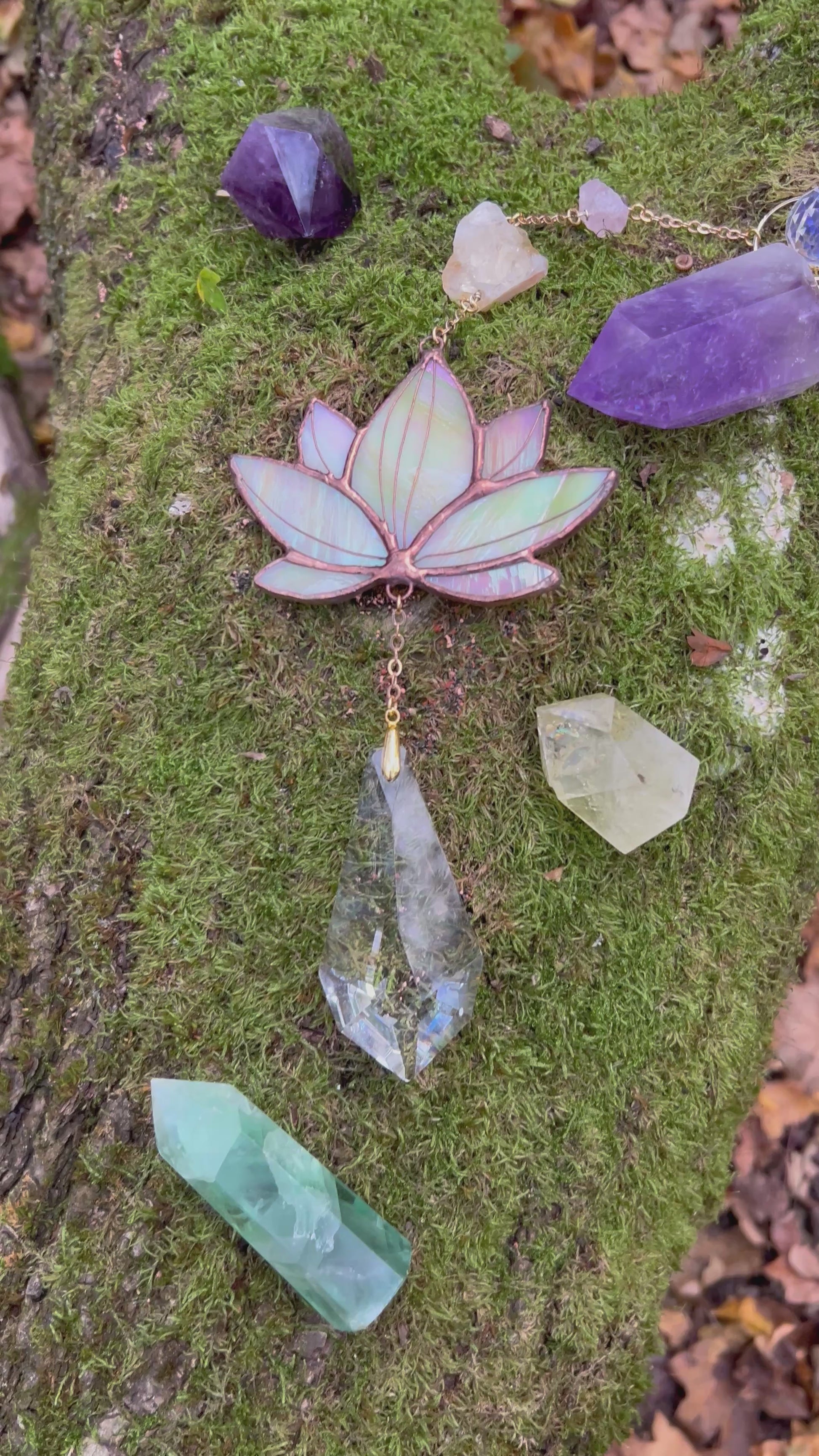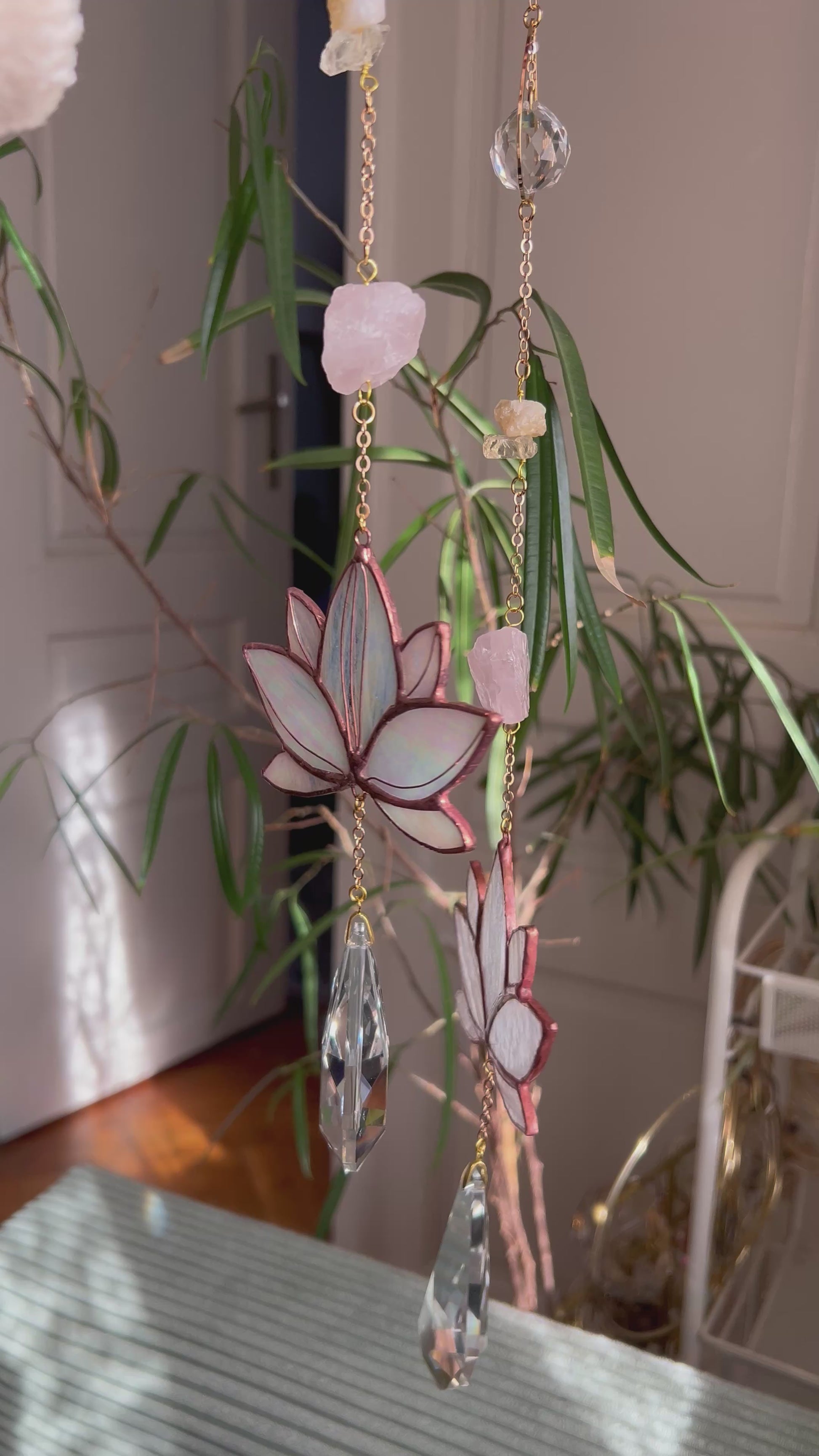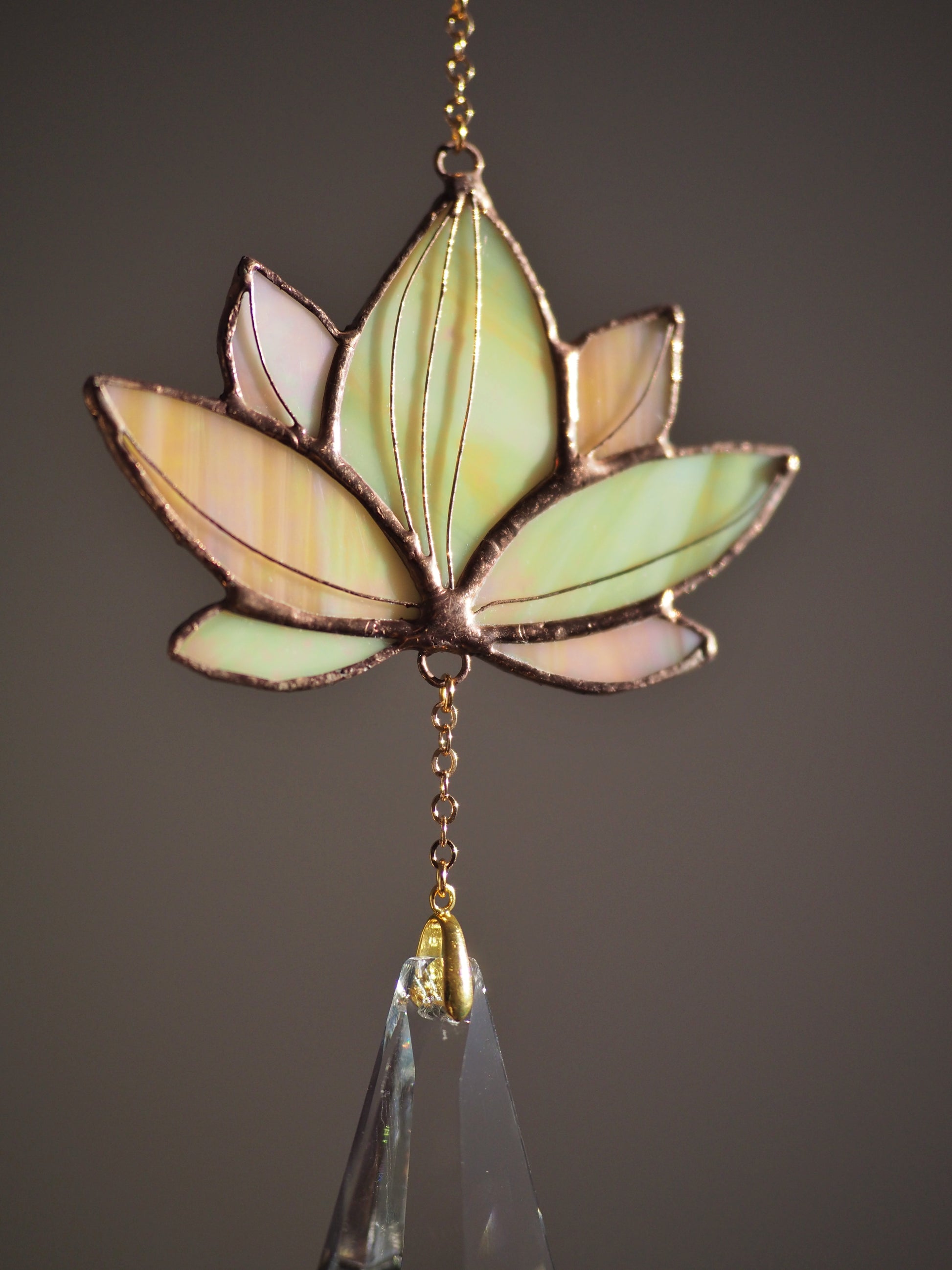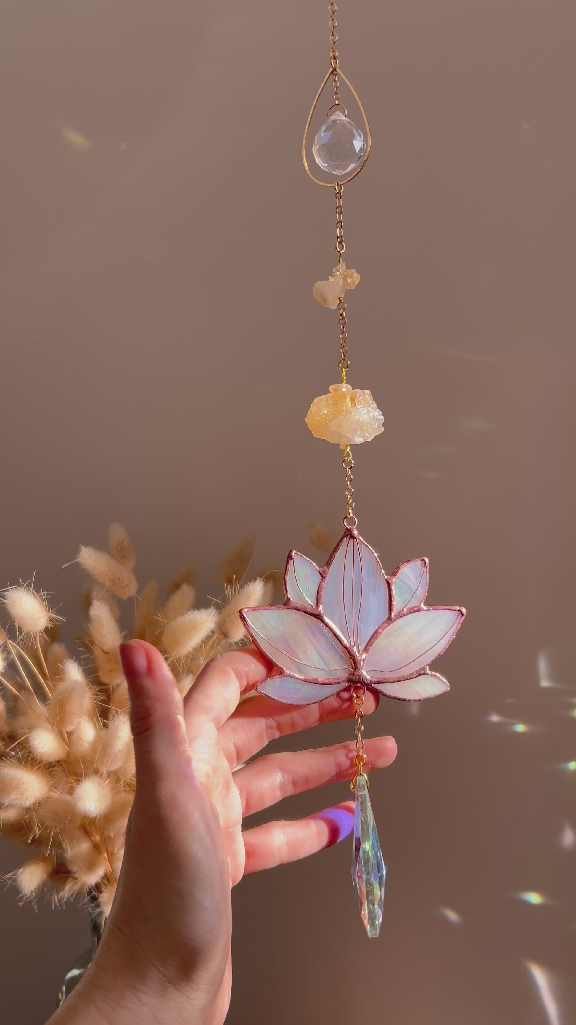 Stained glass window hangings lotus flower suncatchers with natural crystals big prism hanging decor