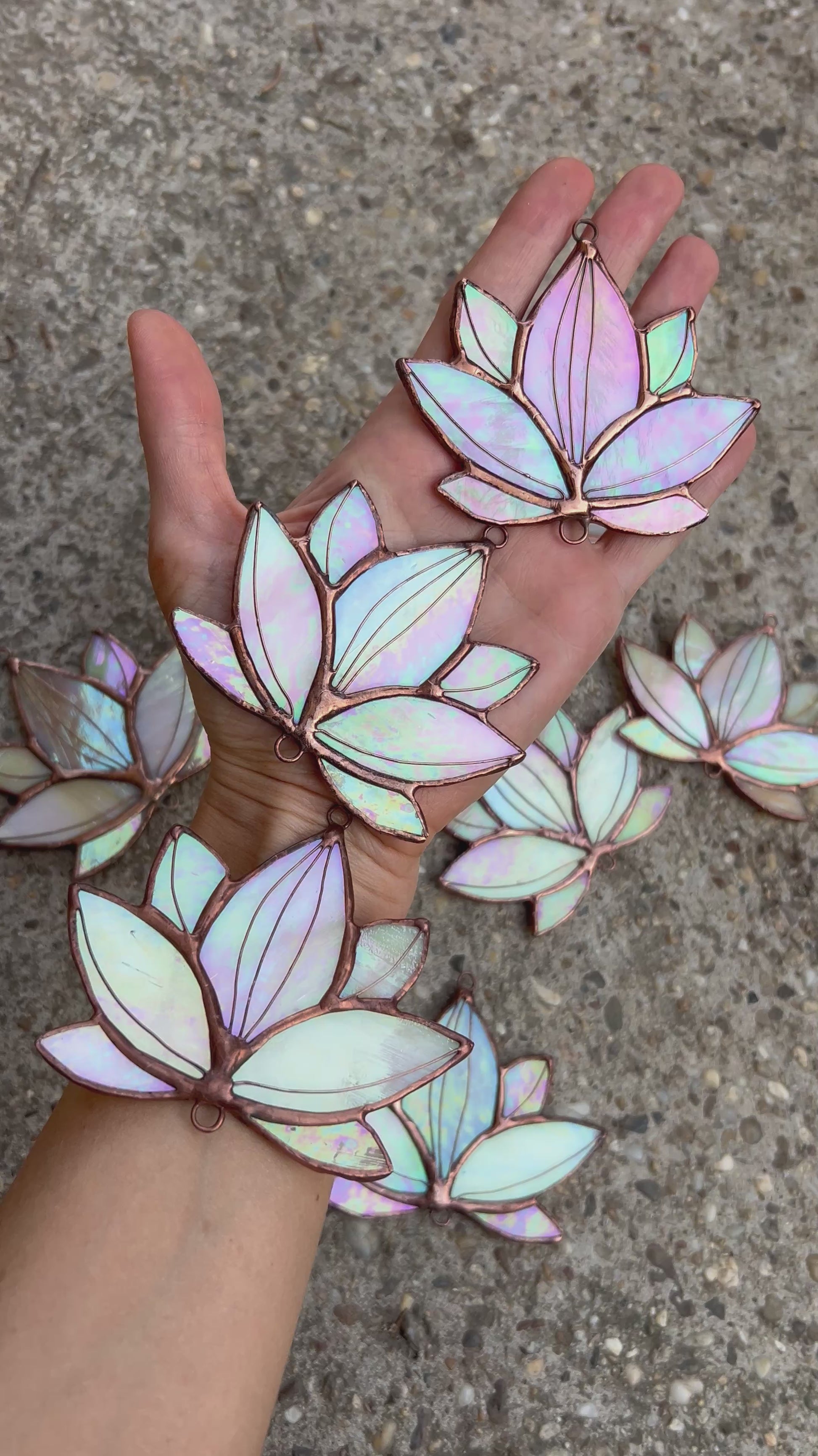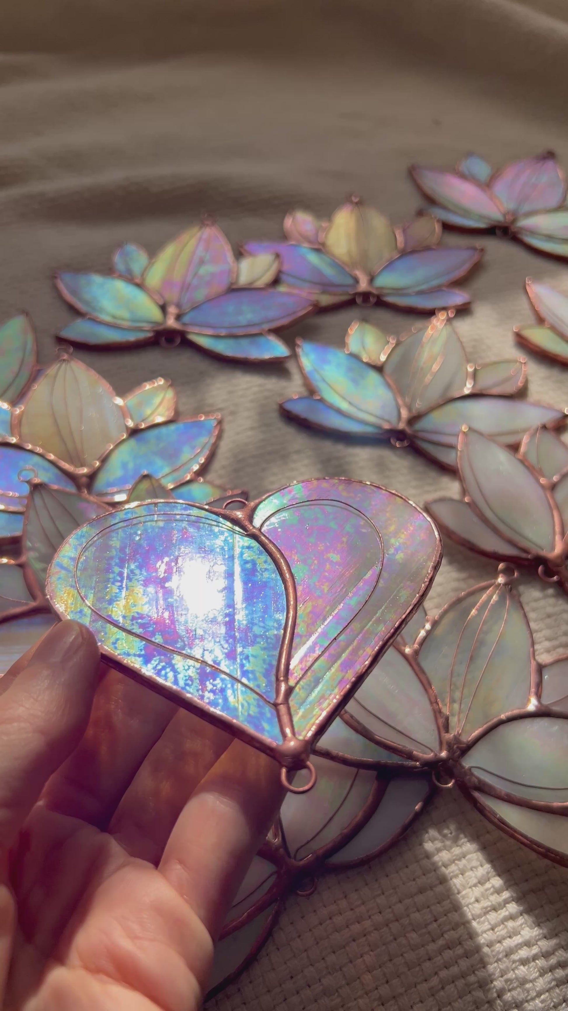 Handmade Stained glass Lotus flower: 2.56 inches x 3.54 inches / 6.5 cm x 9 cm