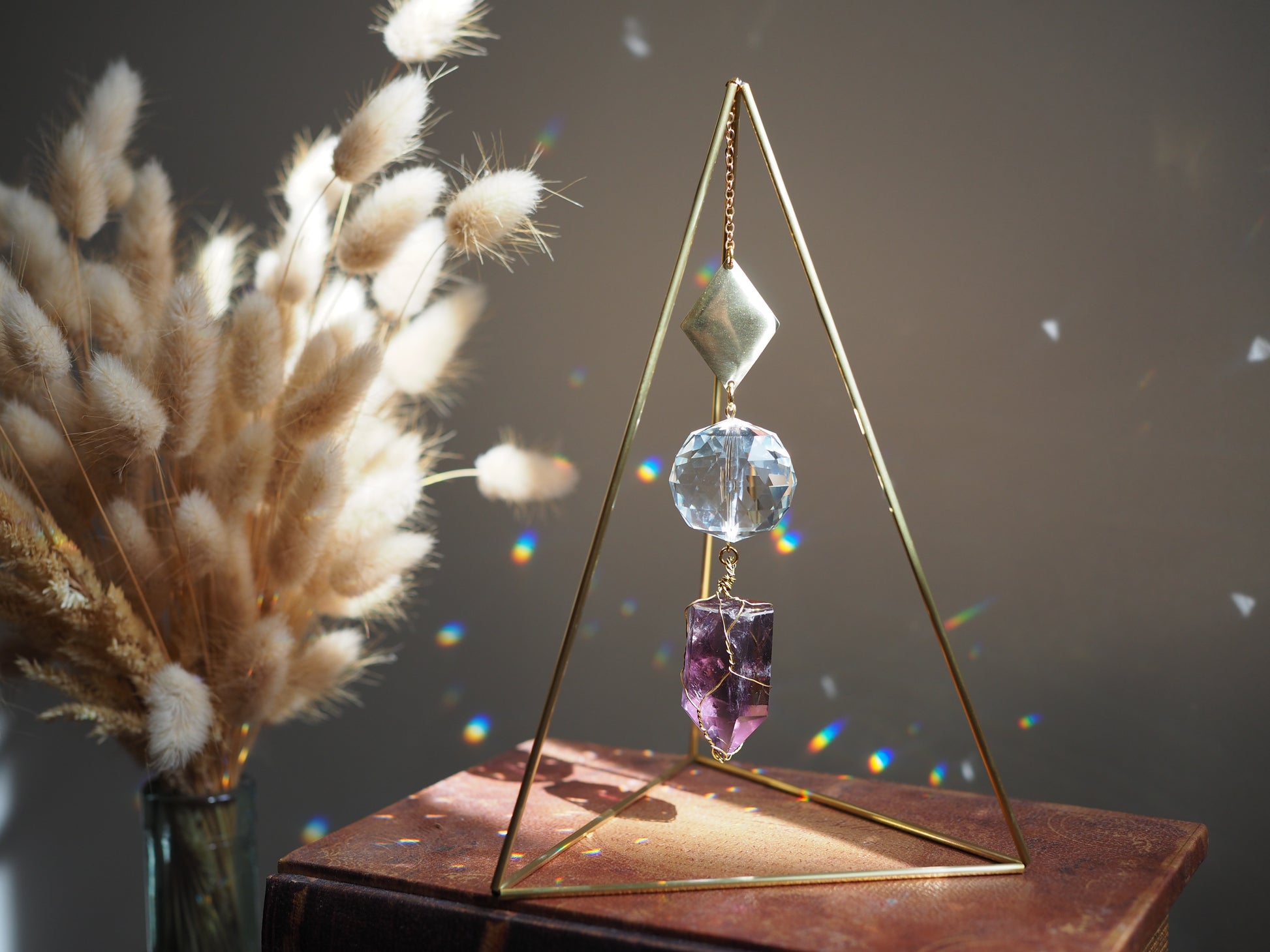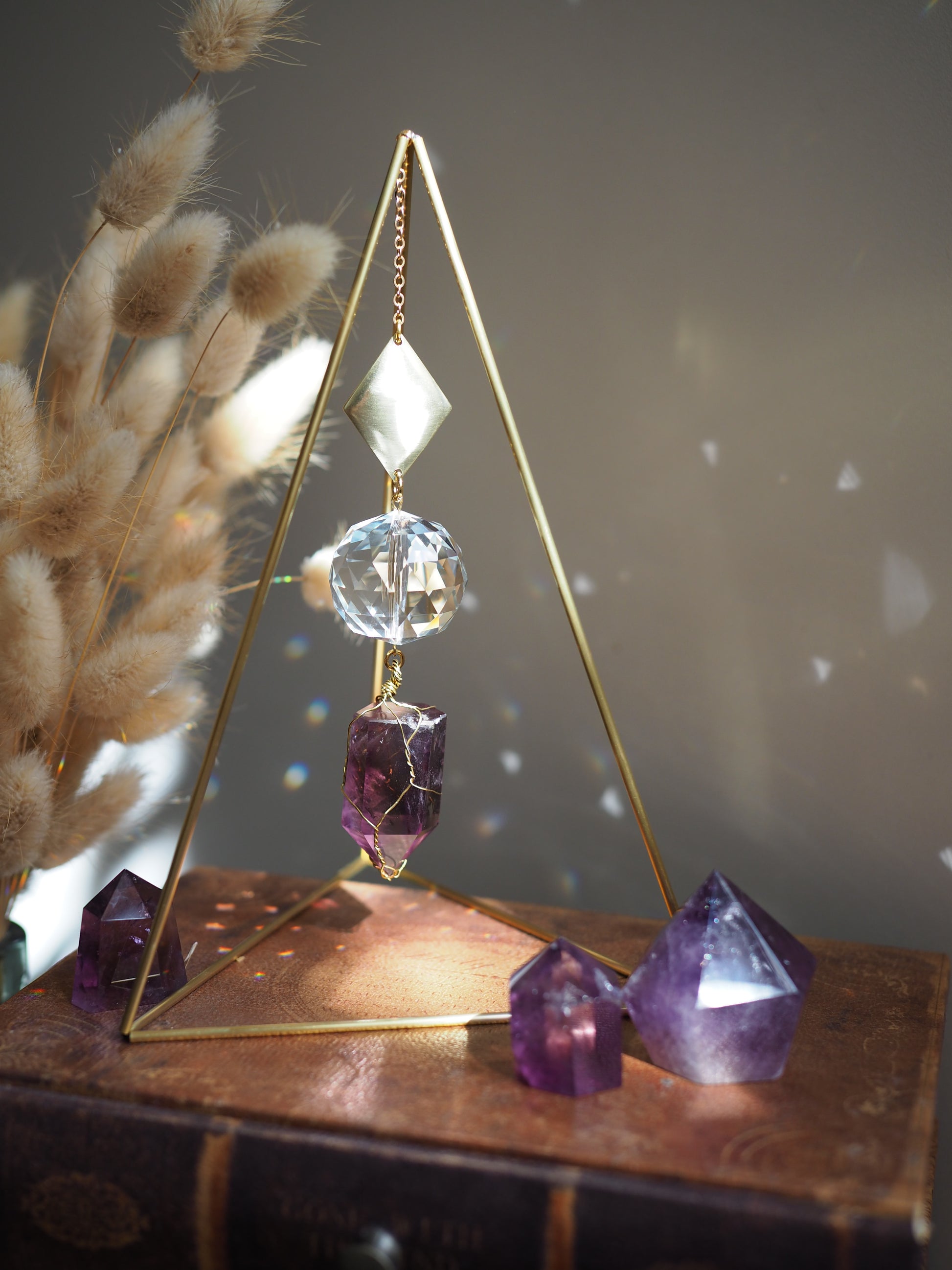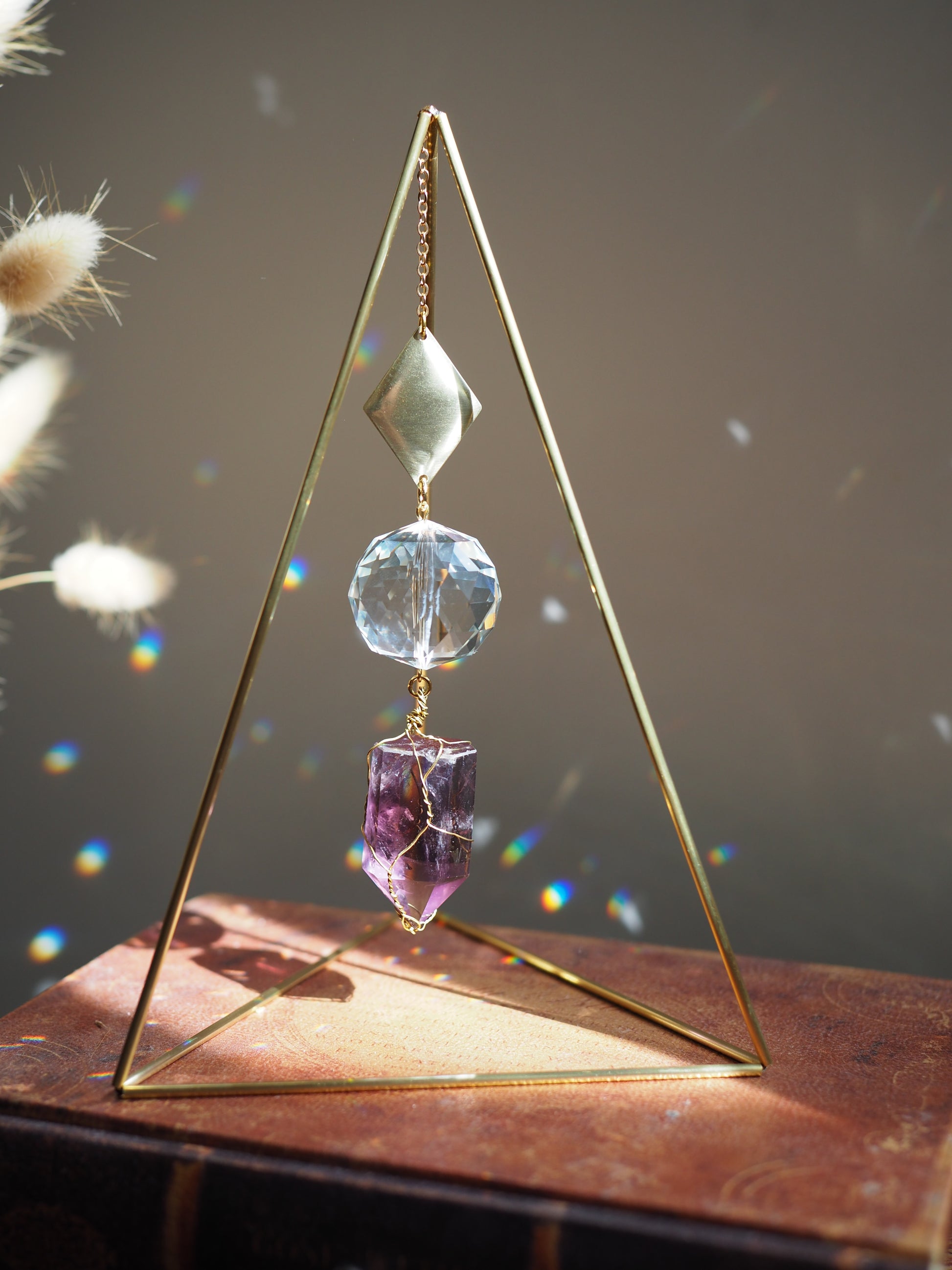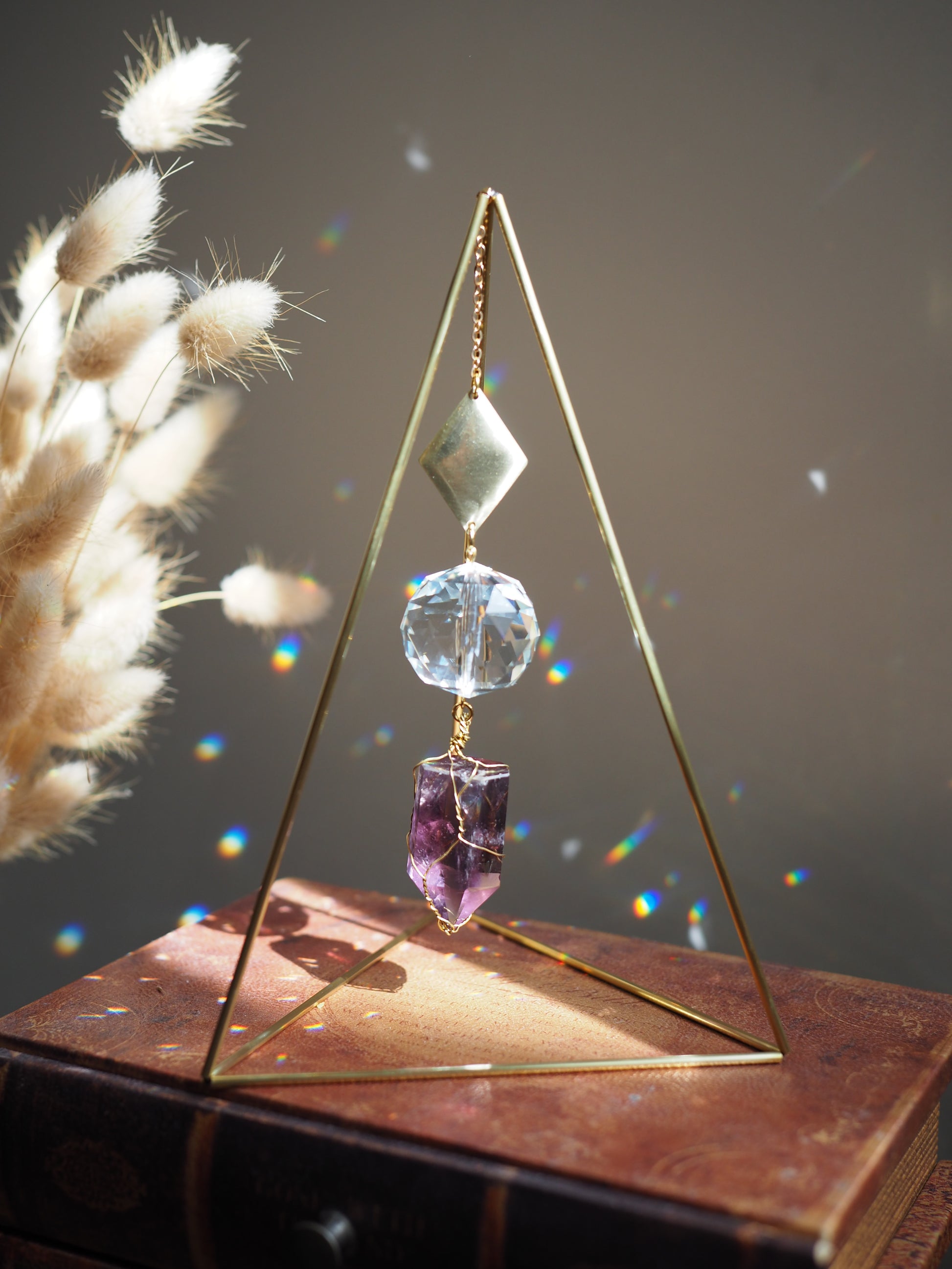 Standing suncatcher with amethyst- tabletop prism triangle suncatcher crystal decor- Arion