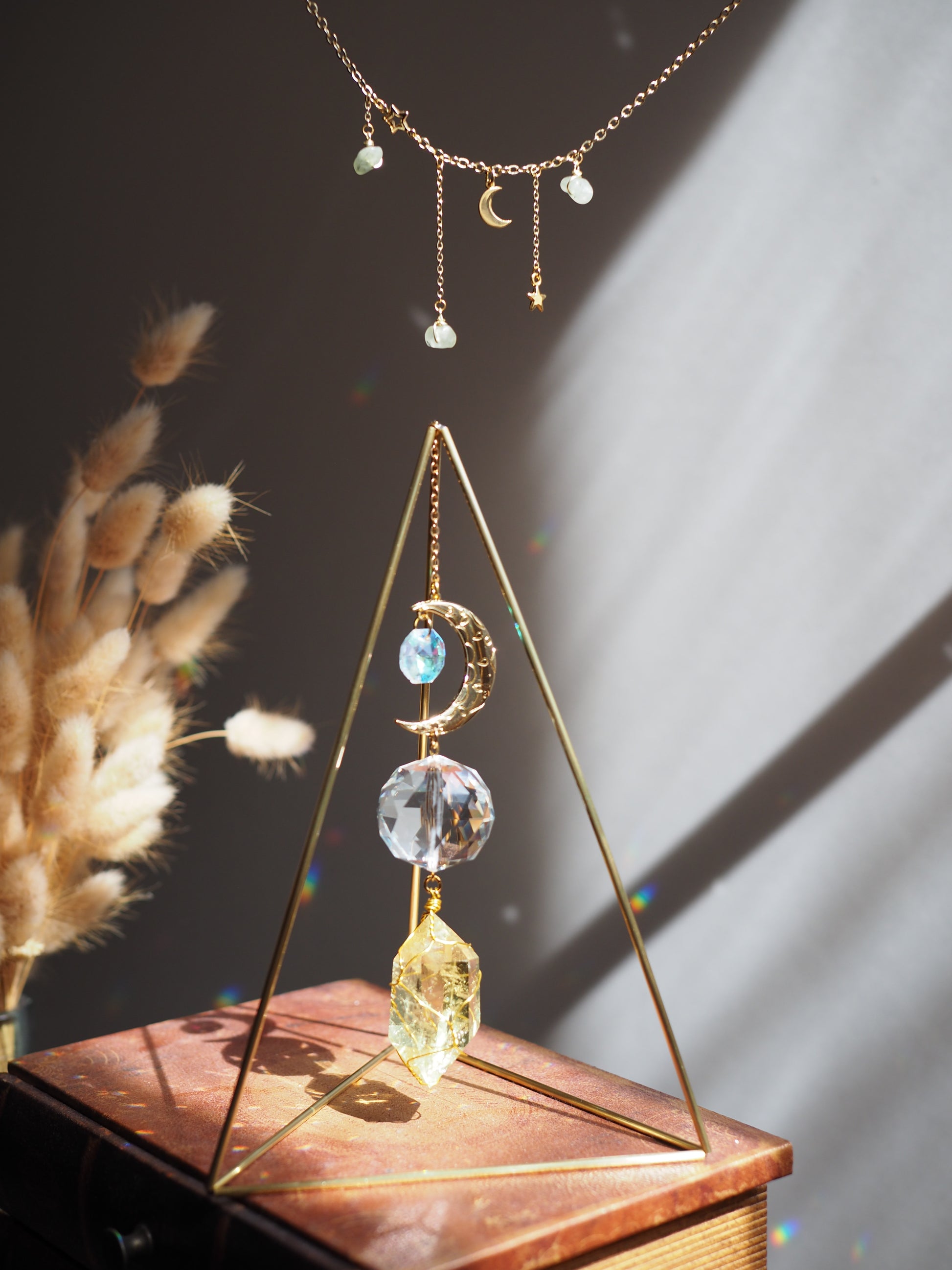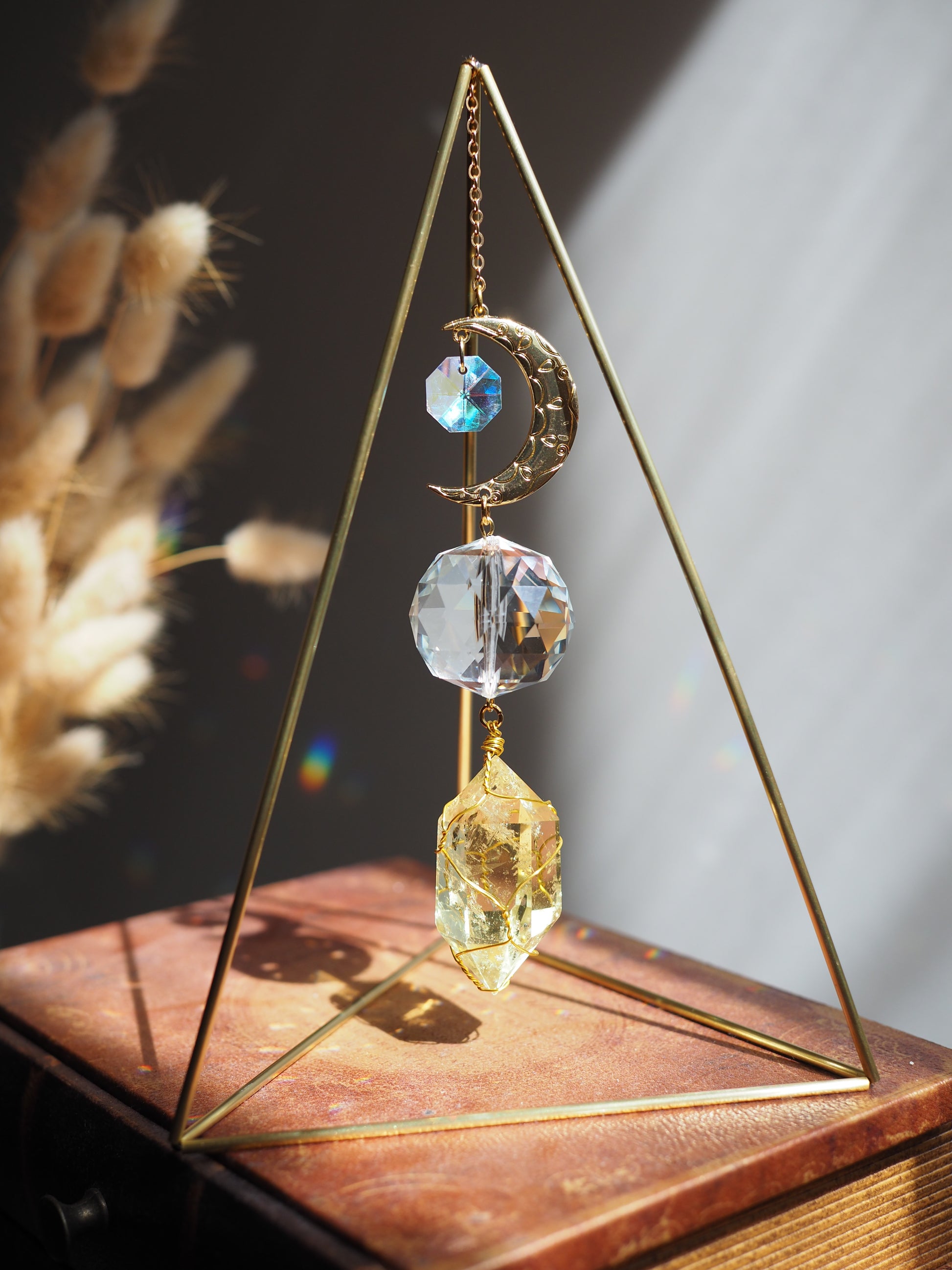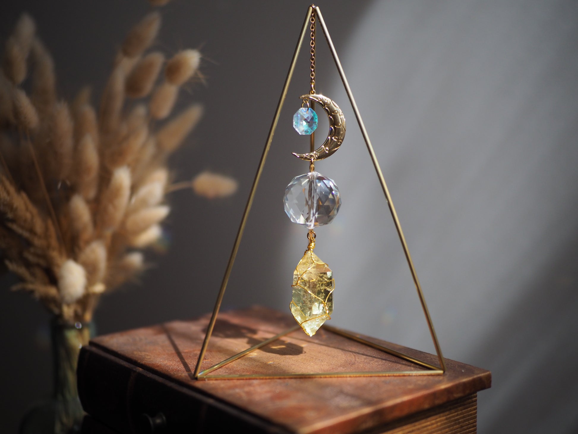 You can choose between Citrine, celebrated as the crystal of joy and abundance, or Amethyst, cherished for its calming and spiritual energy. As sunlight passes through the crystals, they cast enchanting rainbows across your room, bringing warmth and magic to your everyday space.