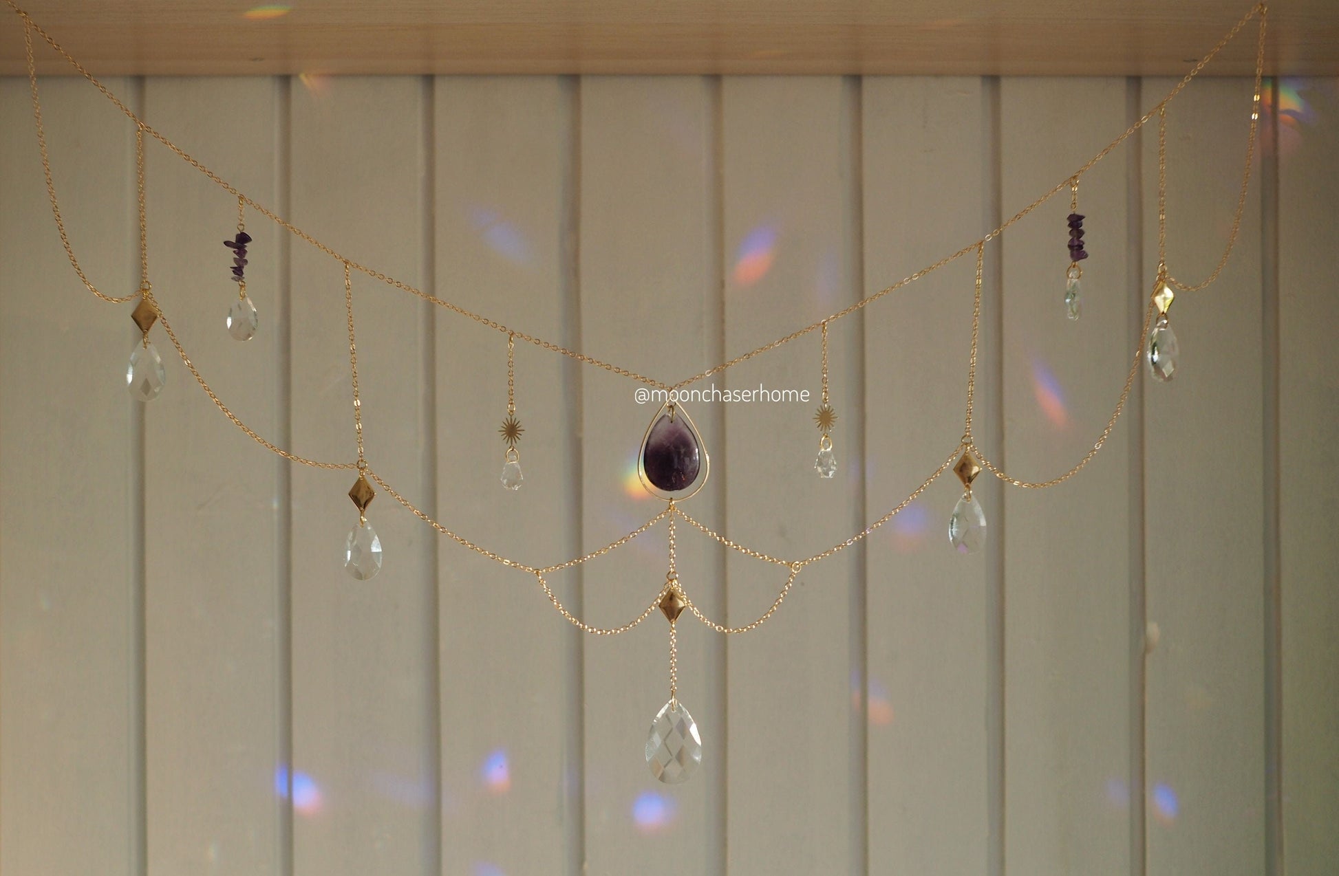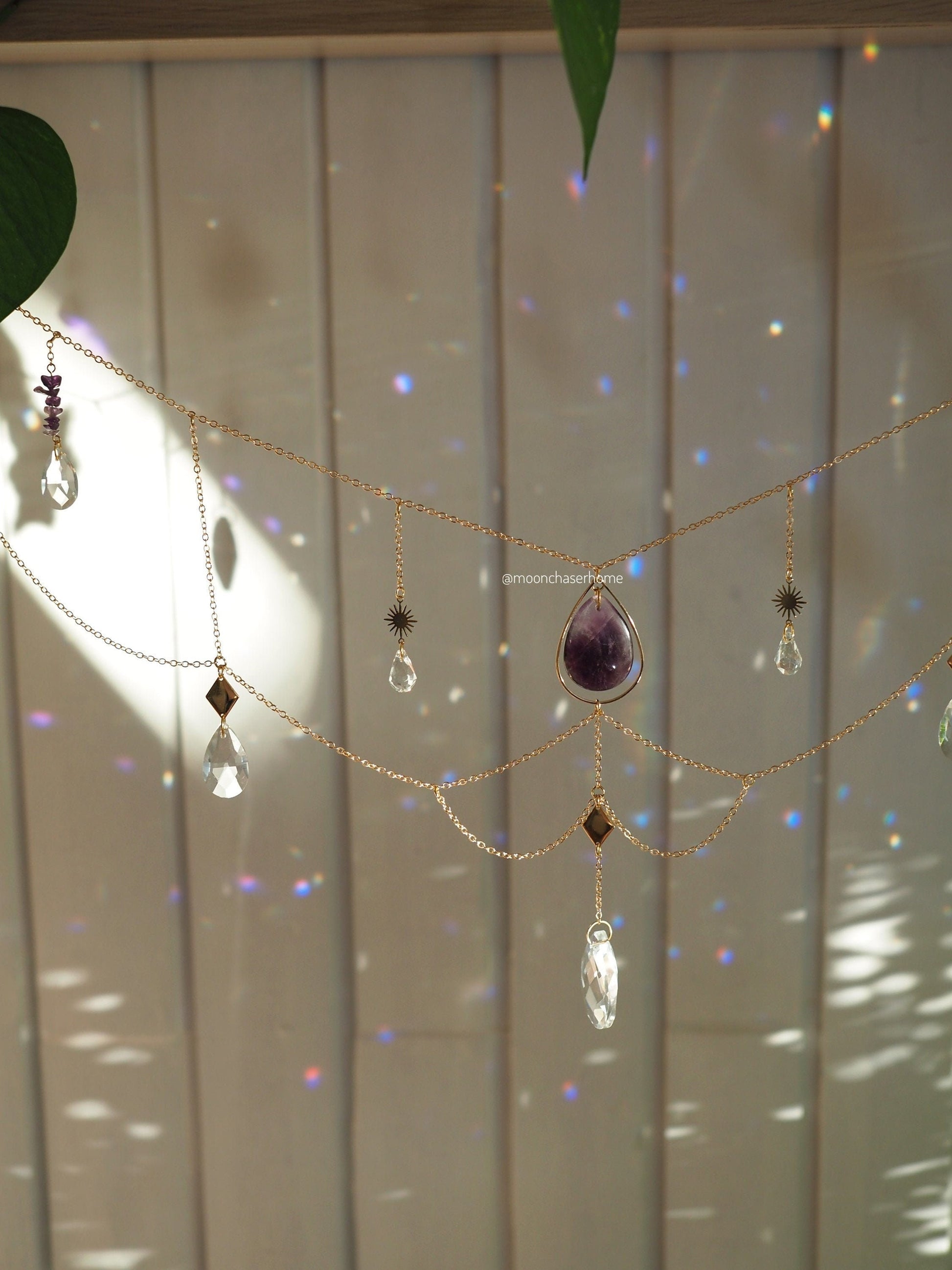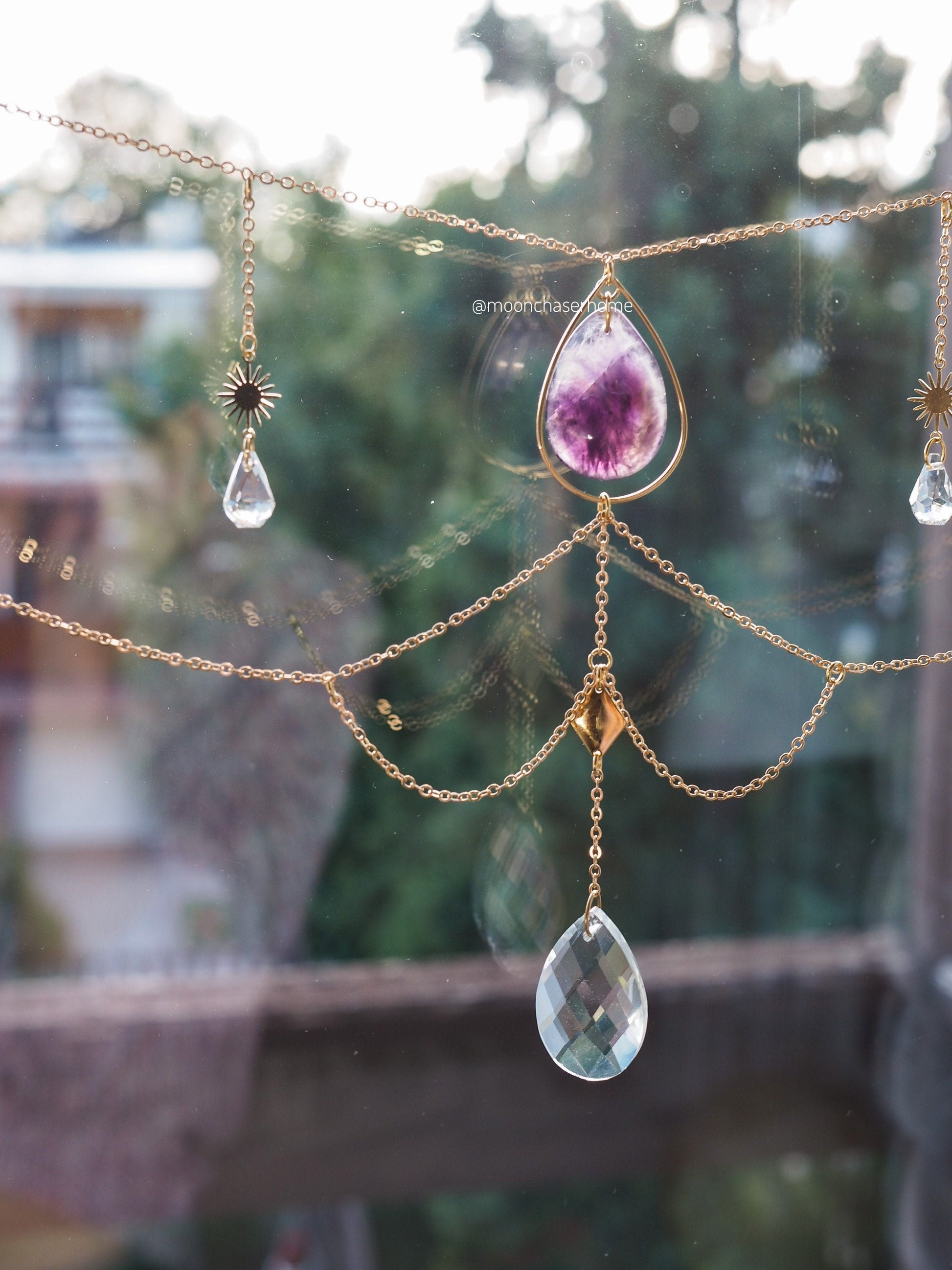 Yamini-Horizontal 18k gold plated sun catcher+ amethyst crystal-Window decor-rainbow prism-gift for woman-housewarming gift