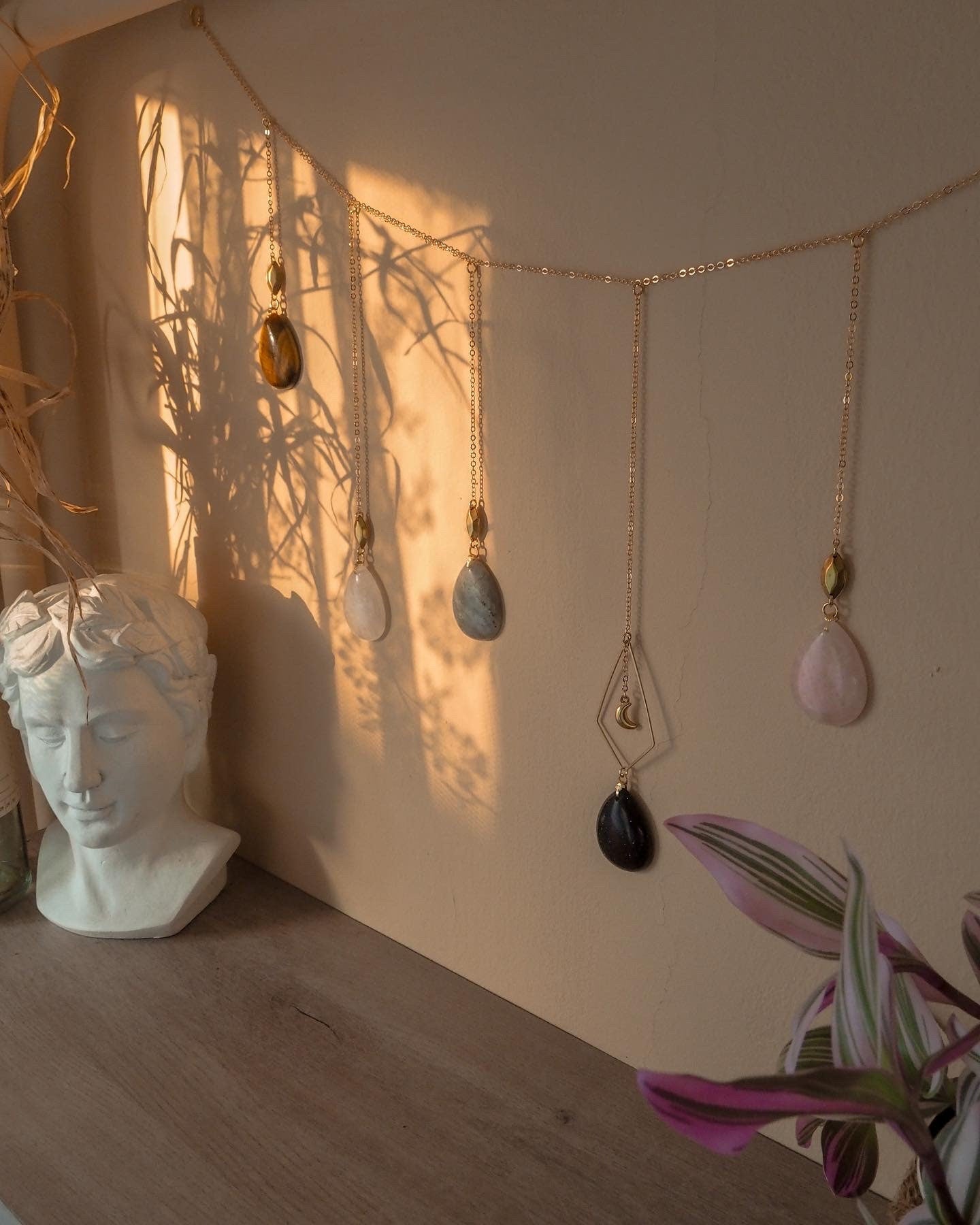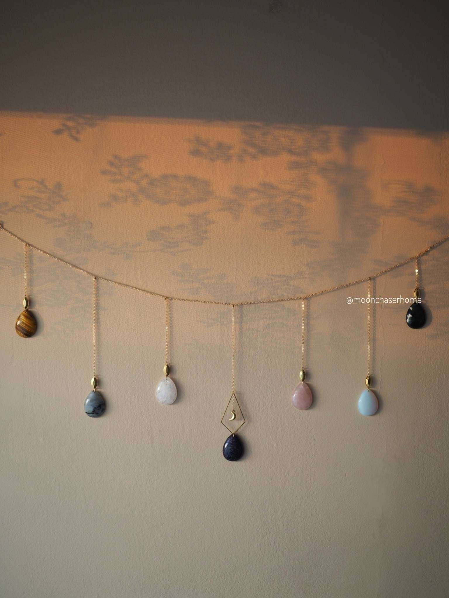 Yara crystal garland, wall hanging - moon wall decor- boho home decor- house jewelry-crystal- birthday gift-crystal grid-witchy home decor