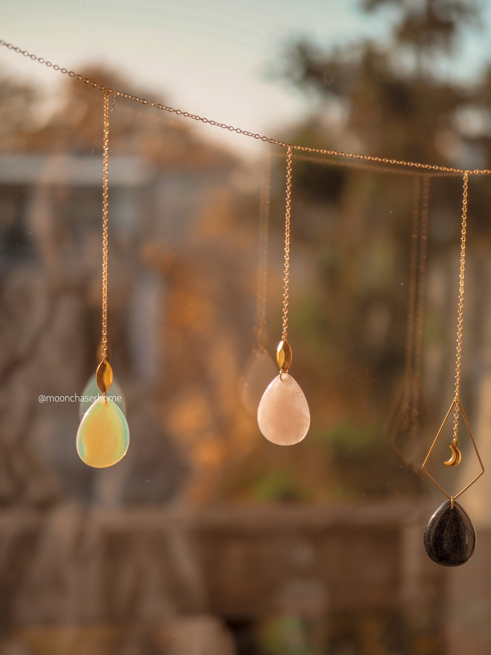Crystals: Rose quartz / Clear quartz / Tiger Eye / Blue sandstone / Labradorite / Opal / Indian agate/ green aventurine